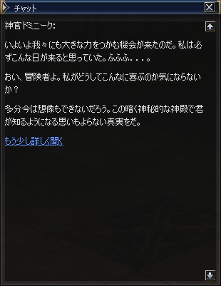 スタートNPCは、ルウンの神殿にいる神官ドミニーク。