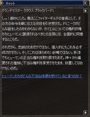 グランドマスター クラウス ブラックバードはファイターギルドにいる。