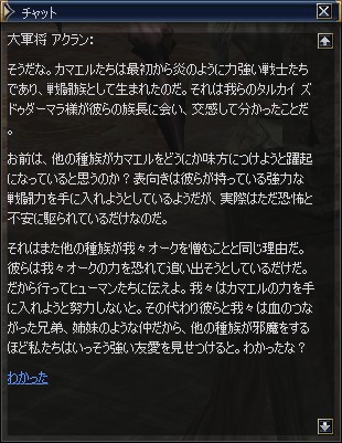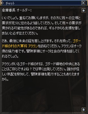 オークギルドにいる大軍将 アクランに話を聞く。