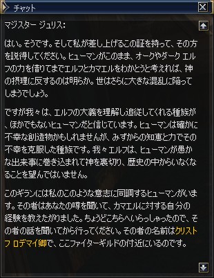 ギランのメイジギルドにいるマジスター ジュリスに話を聞く。