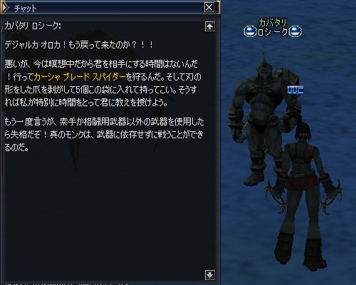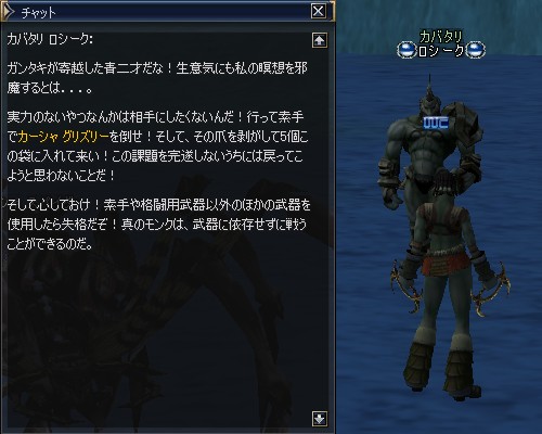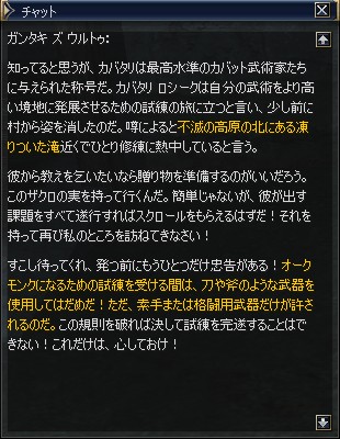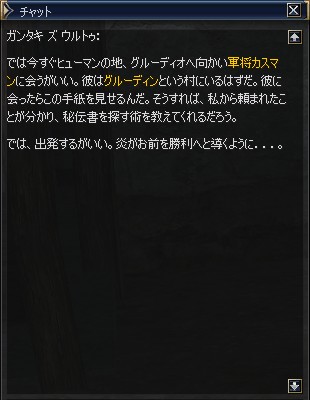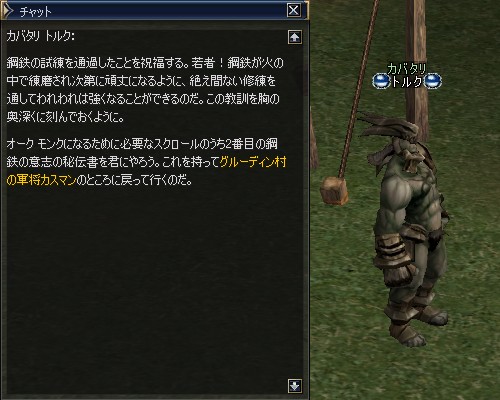 で、ミスリルバンデッド装備して、さっそくスタートNPC ガタンキ ズ ウルトゥのところへ。
