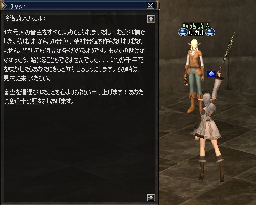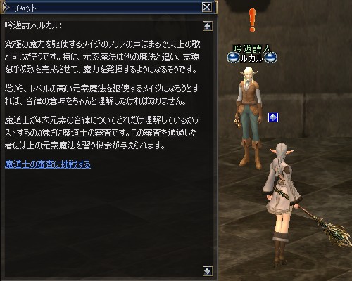 私はスペルシンガーになるので、クエスト「魔道士の審査」を受けます。