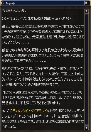 スタートNPCは、ディオン村の教会にいる吟遊詩人 ルカル。
