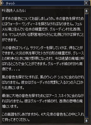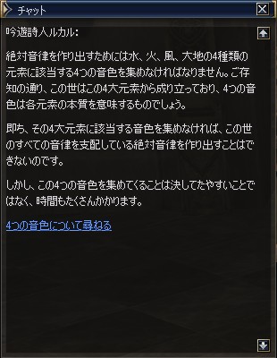 4つの元素の音が揃ったので、ルカルのところに戻る。