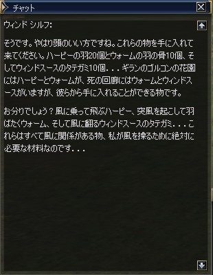 とりあえずギランに。ゴルコンの花園でハーピー狩って「ハーピーの羽」20個。