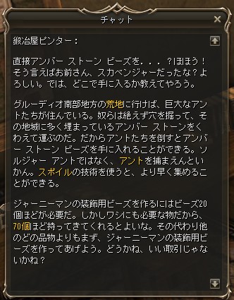 アンバーストーンビーズ70個集めてピンターのところへ。