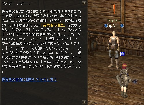 バウンティーハンターへの二次転職、ラストはクエスト「探索者の審査」。