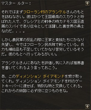 ディメンションダイアモンド82個ルターの手紙をもらって、フローラン村へ。