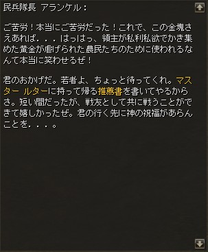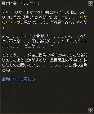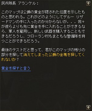 カギで木箱を開けると金塊20個が手に入るので、アランケルのところへ。