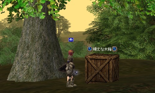 クエスト を選ぶと、木の横に「頑丈な木箱」が現れて、錆び付いたカギが手に入る。