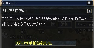 リディアの手紙は通常アイテムに入るので、ダブルクリックして中を見ます。