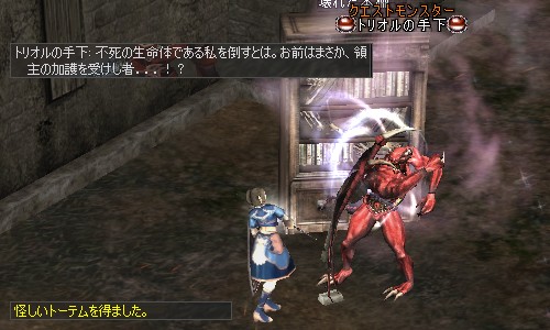 画像は戦闘中ですが、手下の台詞と怪しいトーテムは倒した後に出ます。