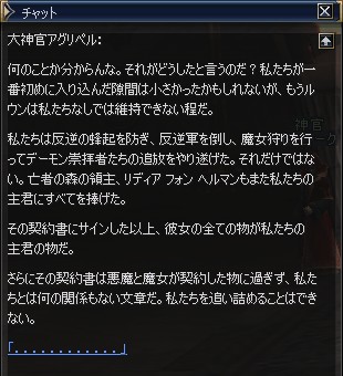以上が契約書の内容。「 」はトリオル、{ }はニドラーだな。