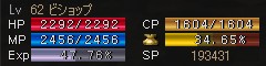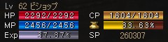 2時間半ほど狩りして、旦那さんのソウルショットなくなったので帰還。