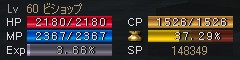 3時間ほど狩りして帰還。Lv60はスキルアップレベルなので、さっそく神殿へ。