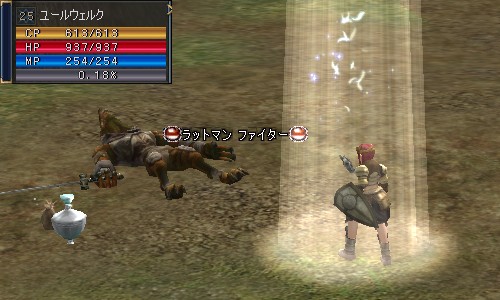 次はラットマンファイターLv19@廃墟に向かう道(グルーディオ領)。