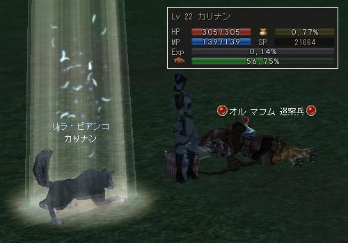 で、いつものように初心者エンチャントもらって、ウルフ連れて狩り。