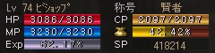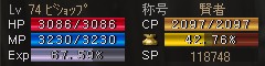 さすがに盾PTのときとは取得経験値・SPがひと桁違うな(苦笑