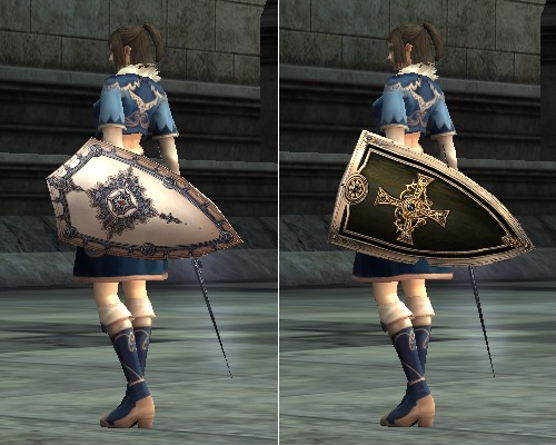 左は今まで装備してたアバドンシールド(Bグレード)、右がダーククリスタルシールド(Aグレード)。