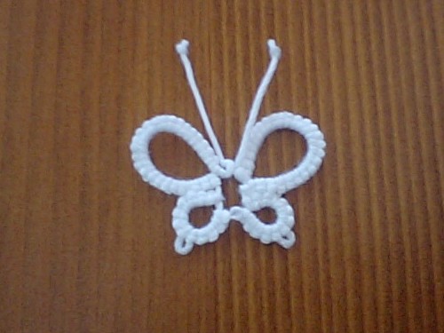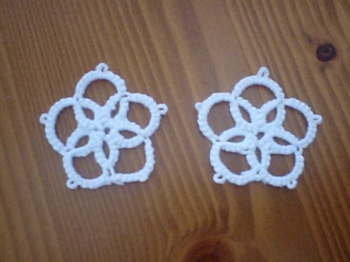 昨日の「蝶」はシャトル1個で編めるんだけど、「花」はシャトル2個使って編む。