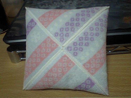 というわけでちくちく縫って、ミニクッション完成。