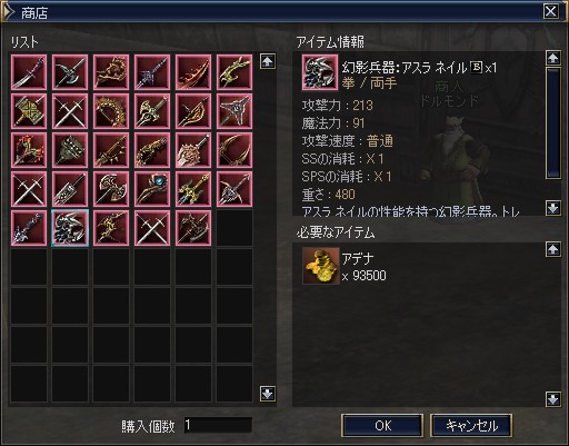 幻影兵器:アスラネイル購入。