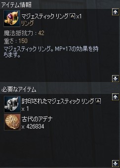 マジェスティックリングを受け取って、クエストアイテムと交換でもらえる素材をもらいに