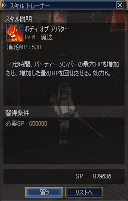 ボディオブアバターLv6習得。アバターはこれでラストだな。