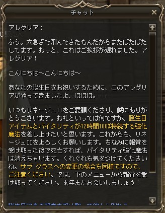 IN したら、誕生日のお知らせが出てて